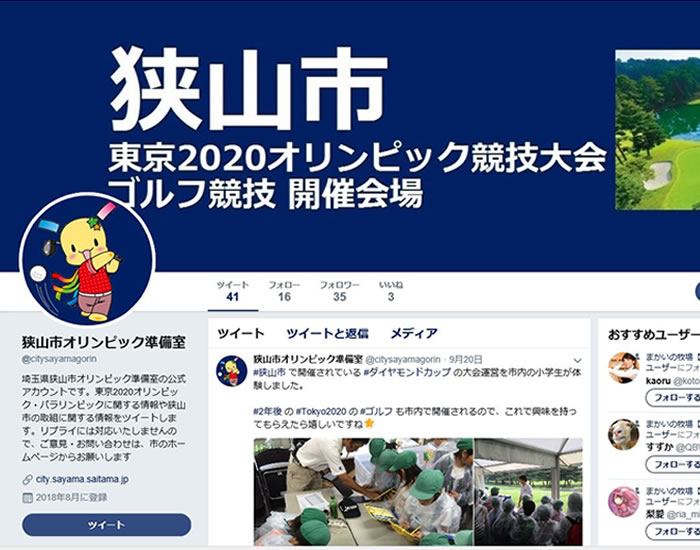 狭山市では、川越市と同じようにオリンピック準備室があり、さらに、驚いたことに独自でツイッターを開設してつぶやいています。