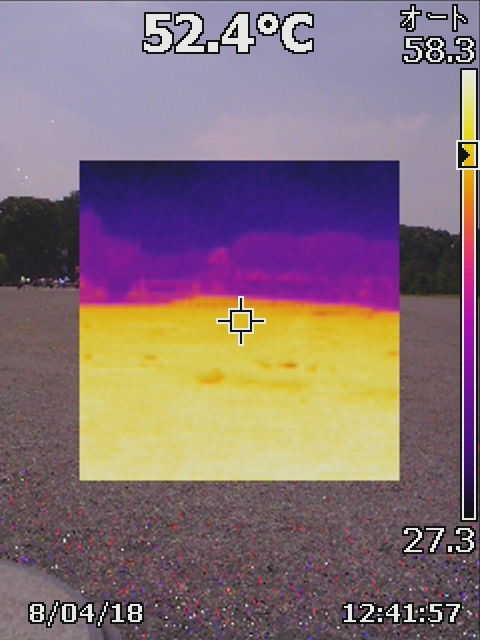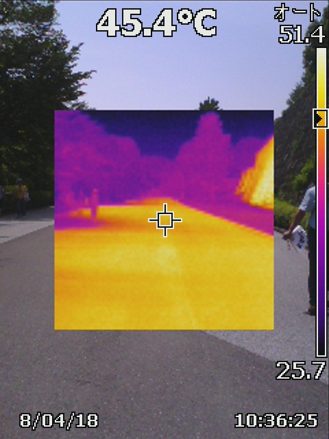 違った。やはり昼近くなると、アスファルトは熱し、50度近くに。