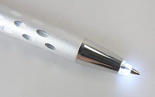 ボールペンのペン先にLEDライトが付いた変わったボールペンです。今まではボールペンのお刷り部分にライトが付いたペンライトタイプがいくつか発売されていましたが暗いところで文字の読み書きをするには不便でしたが手元を照らすペンなので煩わしさが解消されました。活用シーンよりもとにかく面白いボールペンという点ではとてもお勧めです。あまり売っていないアイテムだから付加価値が高くプレゼントに向いています。文具品の中では非常にユニークな商品となっています。実用性よりも、他と違う機能で、ノベルティ品としての価値があるように思います。