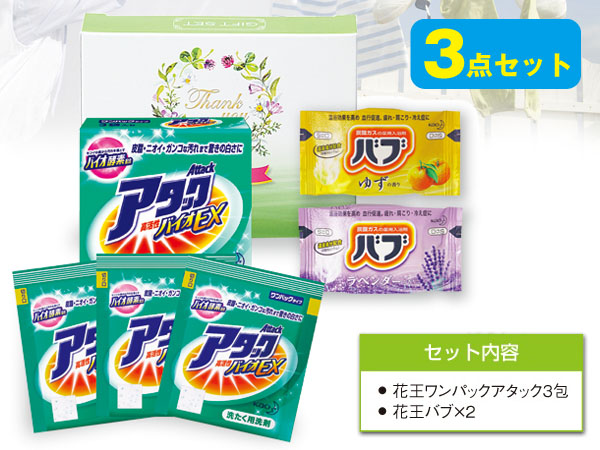 日々の生活を快適にするのに重要なファクターとして挙げる方も多いと思われるのが清潔で着心地の良い衣服を身に付けることと、それらを脱ぎ捨てて入るお風呂の充実感です。そう考えてみると日常生活を充実させるのに洗濯とお風呂は密接に関わっているのがわかります。そんなわけで洗濯洗剤のアタックと2種類の香りが嬉しい入浴剤のバブの組み合わせはなかなかに魅力的。有名メーカーの製品ですので安心感がある記念品向けギフトパッケージです。