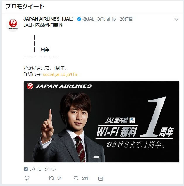 JALの1周年記念のツイッターの内容。