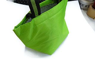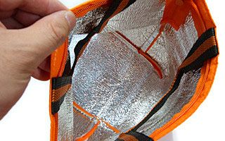まずはカラフルなビビッドカラーが目を惹くランチボックスを収めるのにちょうどよいサイズのバッグです。外出先での食事は何かと気遣うものですから、内側にアルミ蒸着フィルム加工を施してあるこのバッグなら、暖かさと冷たさをそれぞれ持続させることができるので安心です。