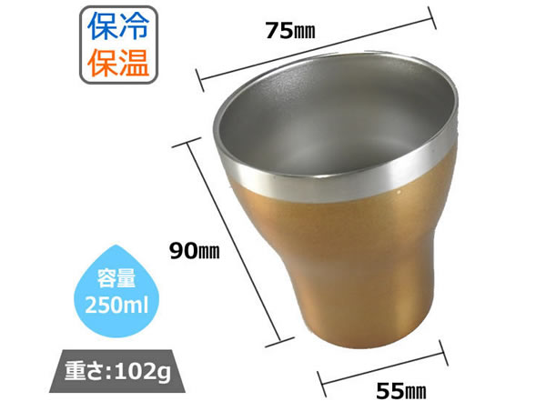 真空ステンレス素材を使用した保冷温効果の高いカップです。容量250mlなので普通のマグカップのような感じで使うことができます。比較的このサイズはホットドリンクなどを入れるのに人気がありますので、冬や卒業シーズンの記念品としてもお勧めです。マグカップに変わる高品質なコップとして注目です。名入れ可能なので記念行事名や年月日などをプリントすることができます。