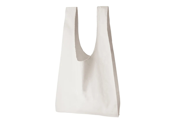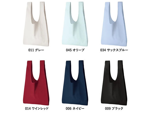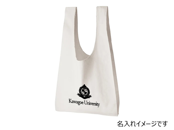 レジバッグのようなざっくりとしたワイドな入れ口が特徴のコットンバッグです。サイズは2種類あり、こちらは大きい方です。