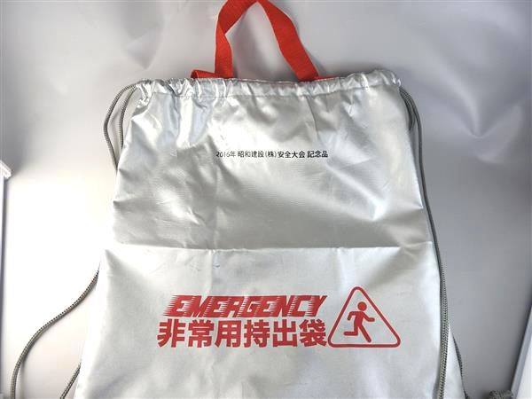 | 備考 | 非常用持出袋・使い捨てカイロ・FMラジオ(電池:単四×2本・別売)・軍手・アルミブランケット・給水袋3リットル・ダイナモLEDライト・11徳ナイフ・IDホイッスル&カラビナリング・マスク・綿棒&バンソウコウ・防災の心得・水500ml・防災用ウェットティッシュ