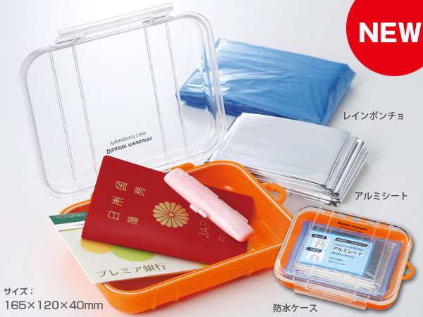防水加工を施してあるミニ災害用ケース。水害から貴重品を守ってくれます。