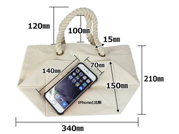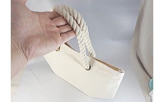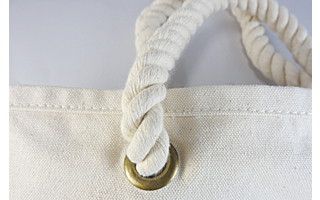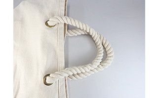 持ち手部分にロープを使用した厚手のコットンを使用したトートバッグです。生地に12オンスという帆布と同じ厚さのシッカリとしたバッグです。持ち手がロープというのがとてもオシャレで、エコバッグというイメージよりもファッションバッグやお出かけバックやオリジナルブランドバッグとして使い方ができるのが特徴です。名入れ可能で目立つサイズでプリントをすることができます。小ロット100個から名入れ可能になっています。
