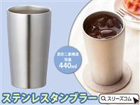シルバー色の真空構造タイプ。暑い夏の飲料に最適、正面に大きく名入れ印刷が可能です。 |