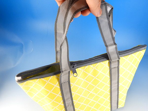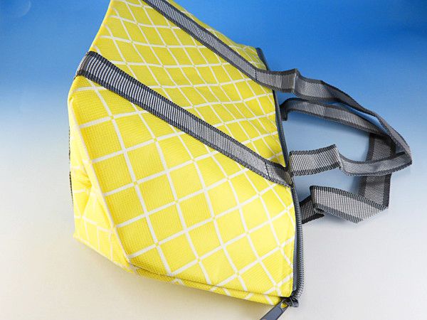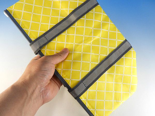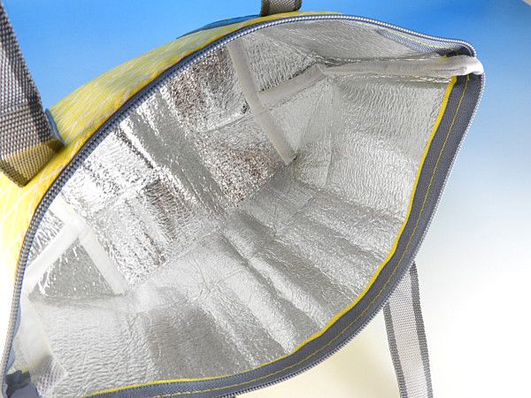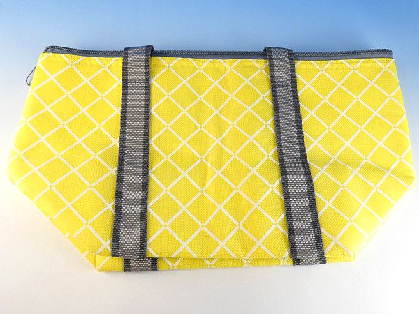 同じ柄で買い物バッグサイズのトートバッグもありますのでシーンに合わせてご検討ください。こちらはちょっと大き目サイズのランチバッグサイズ。一般的なランチバッグの間口が約30cmなのに対してこちらは34cmなのと、マチも若干大き目になっています。お弁当を入れて持ち運ぶにも便利ですし、その他の飲み物や保冷剤もしっかりと入って嬉しいサイズです。意外と男性や育ちざかりの中高生のお弁当には普通のランチバッグだとキツイので、このサイズは本当に便利です。また、お惣菜などを購入したときも水平に運びやすいので利便性の高いクーラーバッグです。