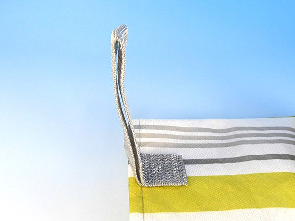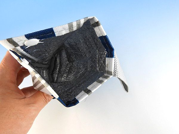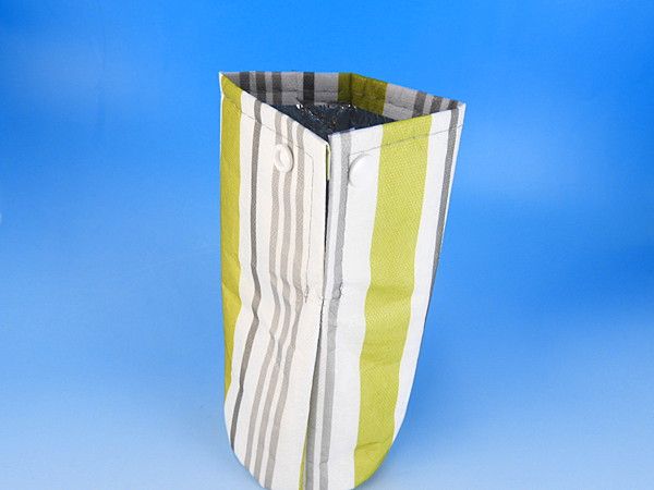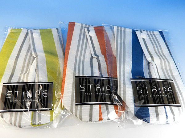 クーラーバッグの素材を使用した保冷温タイプのペットボトルカバーです。巾着タイプでは無いのでストンと入るスタイルで、デザインも縦縞模様なのでとてもスリムなイメージを感じます。