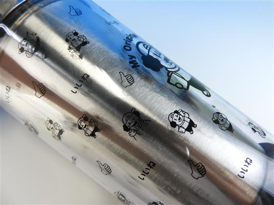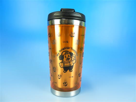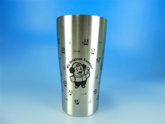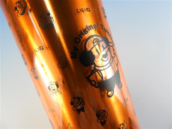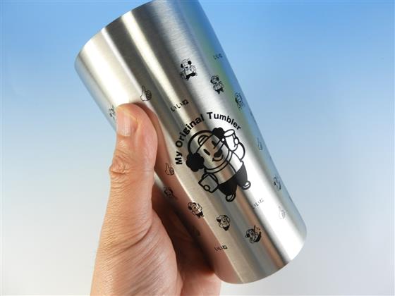 もともとは、グリコのカフェオーレのイベントがあり、その中で、オリジナルタンブラーがありました。良く見かける真空二重構造のステンレスタンブラーですが、このような印刷ができるという「証明」になっており、当店でも対応できると思いました。