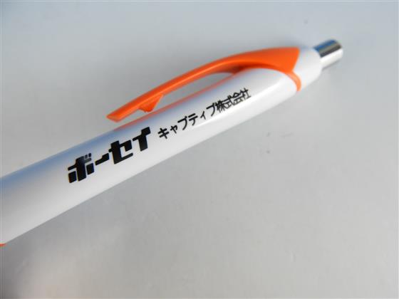 評価できるのがシンプルなロゴ印刷です。ハッキリとわかり、会社名がしっかりと印刷されており、ボールペンの印刷としては非常に良い傾向だと思います。