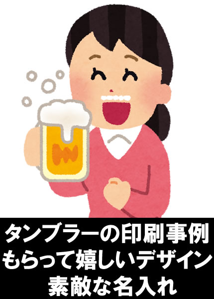典型的なタンブラーの印刷事例です。印刷範囲ギリギリにうまくデザインされております。