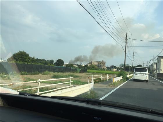 ちょうど出かける前で、会社の前で煙がもくもく。