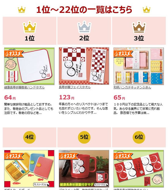 敬老の日向けのカテゴリーであるこちら。