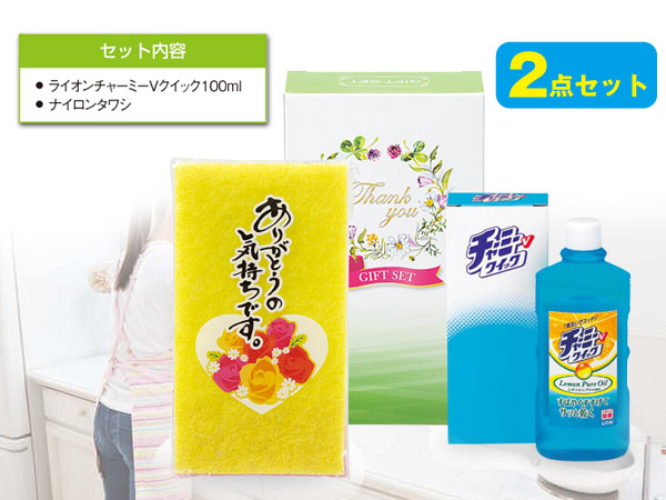日々の生活を充実させるためにキッチンまわりを清潔に保つことは重要です。食器洗剤としてメジャーなチャーミーのVクイックと使い勝手の良いナイロンタワシはすぐに使える即戦力のアイテムとして喜ばれます。実用的なギフトとしておすすめしたい商品です。