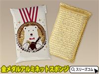 金色のスポンジ。パッケージが熊さんのメダル柄になっております。 |