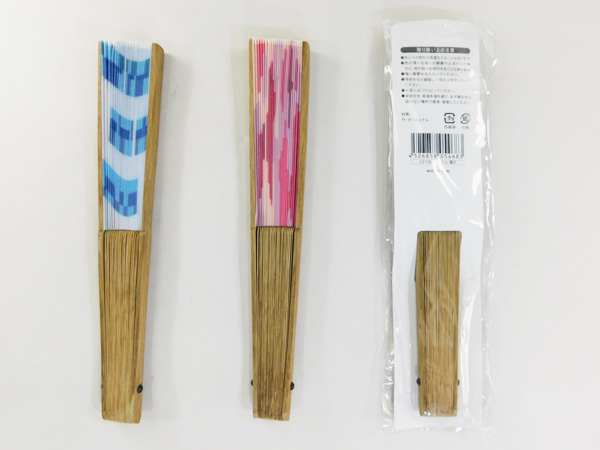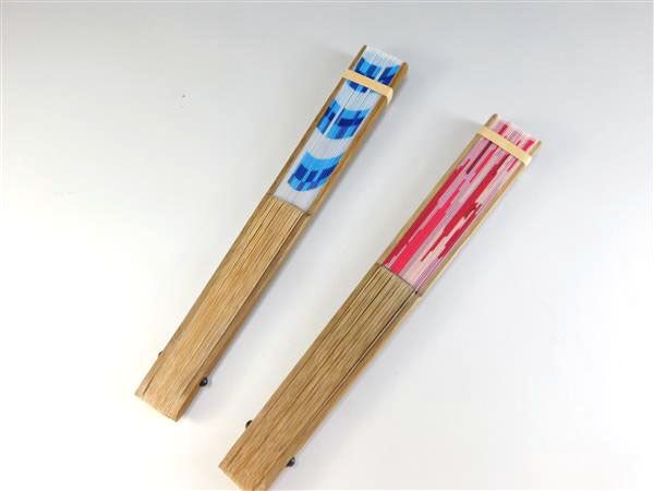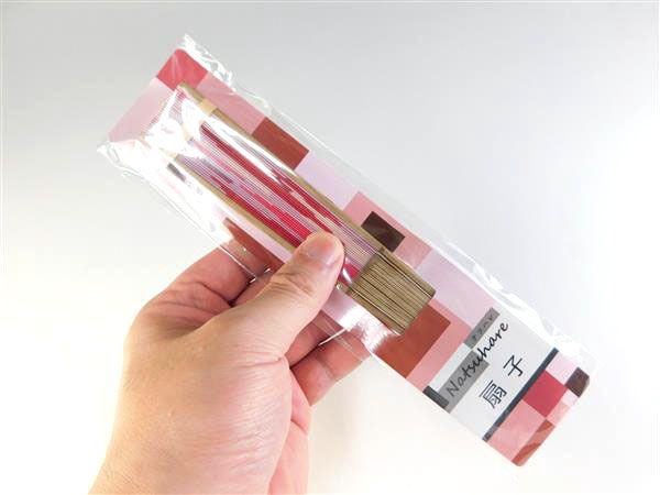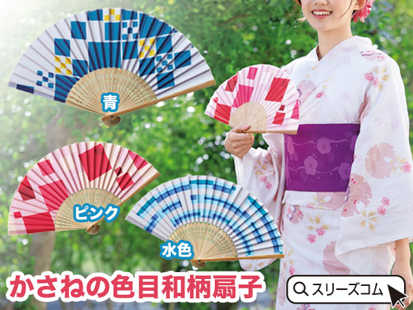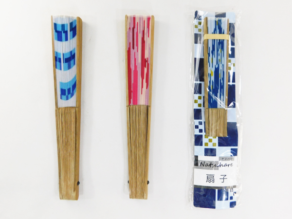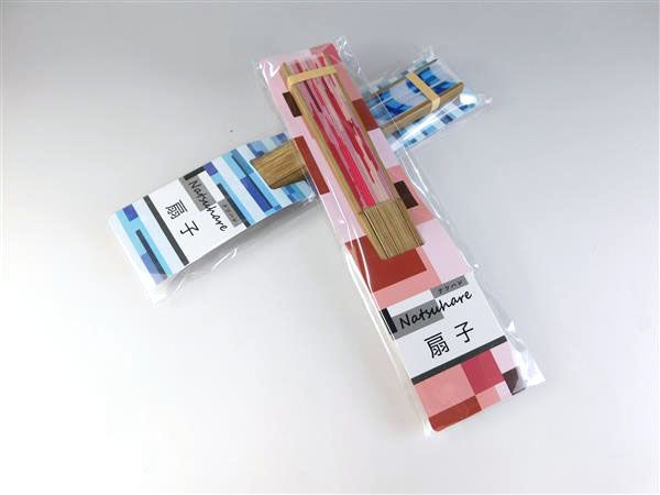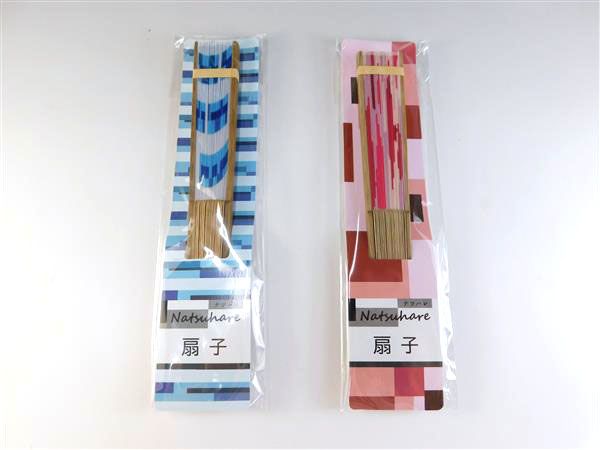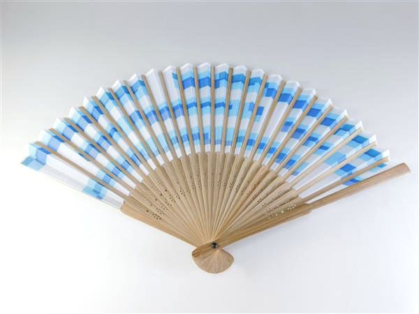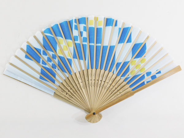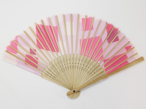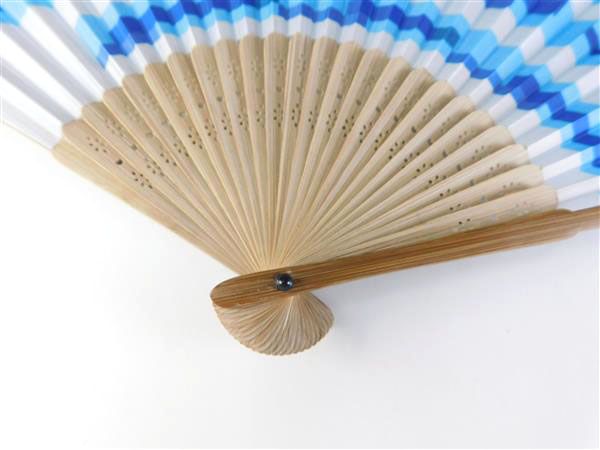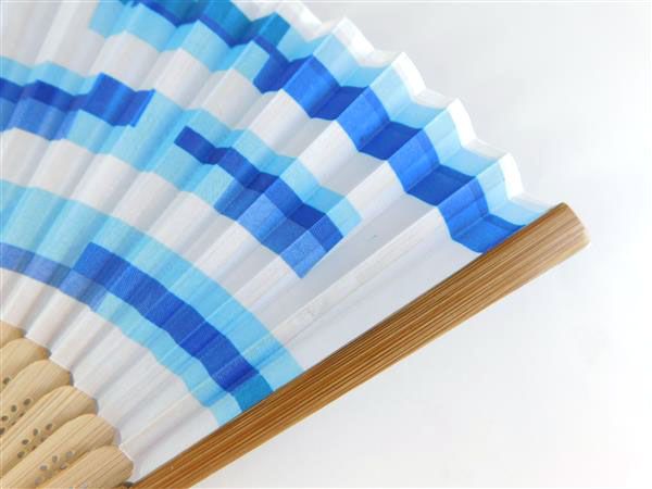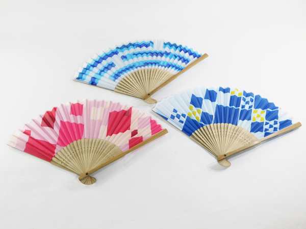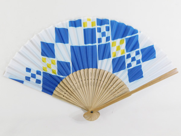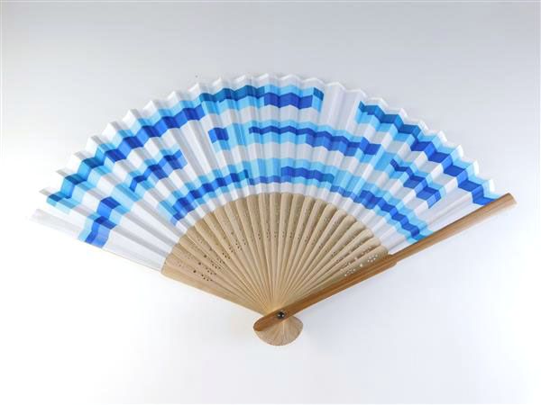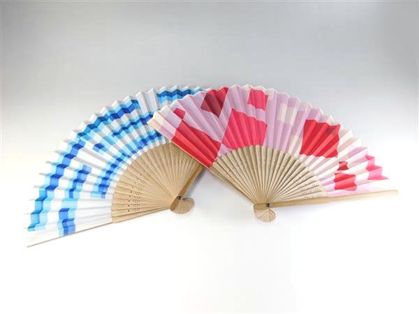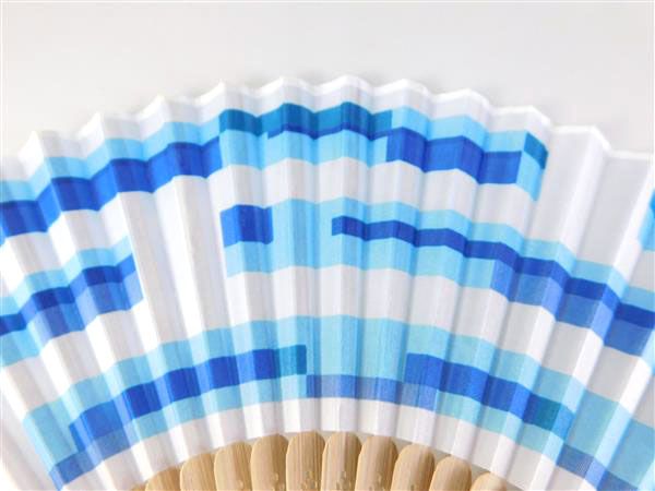 おもしろいデザインの扇子です。毎年1種類はこういった幾何学的なデザインの扇子が登場するのでデザインが気に入ったらおすすめです。単純にブロック模様ということでもなく夏の大会のデザインモチーフに使用されている「かさねの色目」という和柄デザインを取り入れているのでわかる人には特別な良いイメージを感じる扇子になっています。