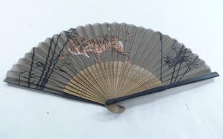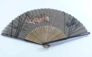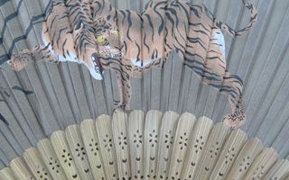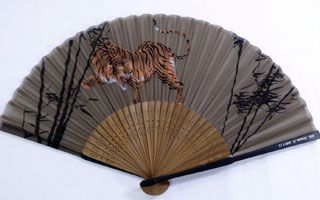 屏風絵などでありそうな躍動感あふれる虎と竹林が描かれた扇子です。