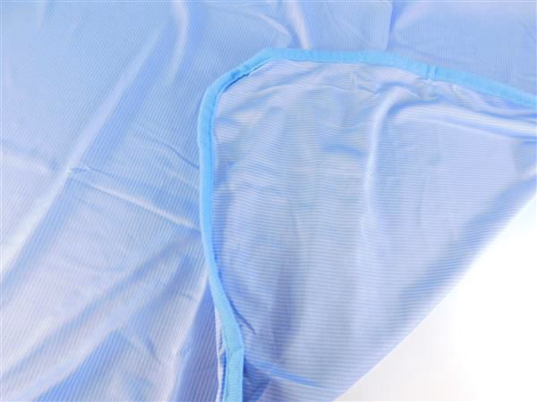 夏の冷えを予防する大き目サイズのひざ掛けブランケットです。素材はサラサラとした感じで通気性の良い生地を使用しています。