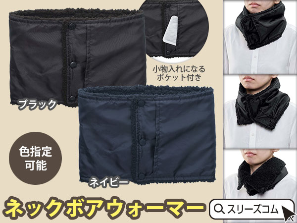 表面は普通の布なのですが裏面はシッカリとしたボア素材を使用しているのでとても暖かいネックウォーマーです。さらにカイロを入れるポケットもついているのでかなり暖かく活用できます。