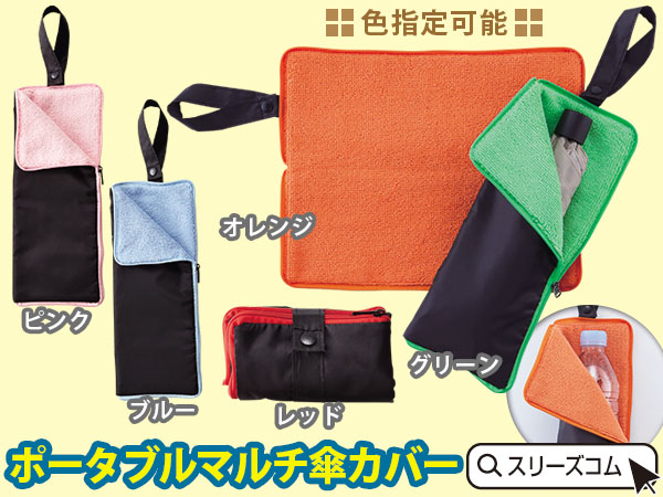 人気のある吸水カバーでカラーバリエーションが豊富で色指定可能タイプがでました。活用用途としてはペットボトルを入れて結露防止としたり、折りたたみ傘の収納ケースとしたり、そのままタオルとして使用したりといろいろと使えるのが便利なポイントです。他の類似商品と違う点としては色指定可能なのと使用しないときにコンパクトに収納できるところです。