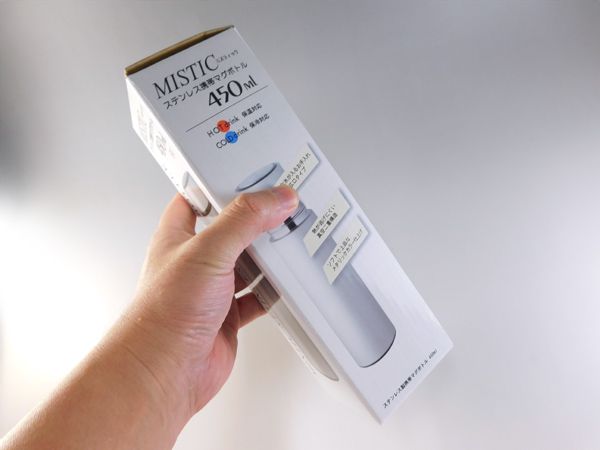 たっぷりサイズのマグボトルです。450mlというとペットボトル1本分くらいな感じです。