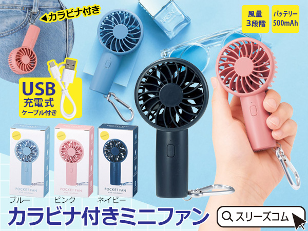 例年人気の夏の必需品。かわいいカラー&サイズに便利なカラビナ付きの小型扇風機です。
