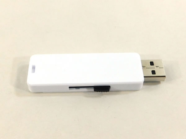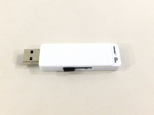 シンプルな白色のUSBメモリ。いくつあっても困らないオフィスの必須アイテムなのでビジネス的なシーンでもらって喜ばれるアイテムです。