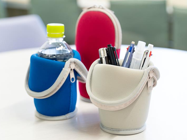 ファスナーを閉じてペンケース、開ければペン立てに!