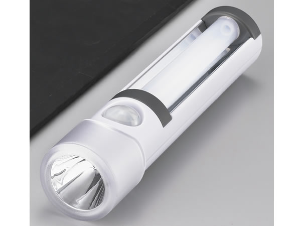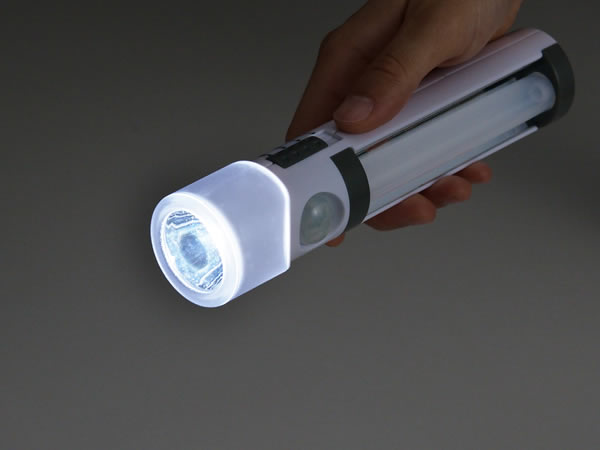 トーチ部分は人感センサーで人が近づくと自動点灯、手に持って懐中電灯としても使用できます。