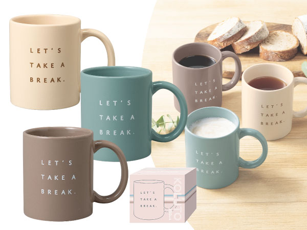 柔らかい色合いで優しい雰囲気のマグカップ。
