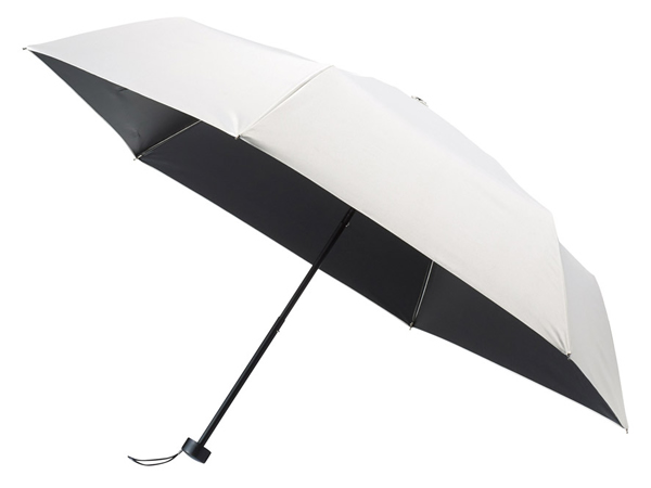 反射光を防くブラックコーティング加工の折りたたみ傘です。暑さ対策とゲリラ豪雨などにとても便利なので夏に1本は持っていたい折りたたみ傘です。カラーはホワイト系のグレーでとても涼しげなイメージなのと、男女兼用で使用でき安いので誰でも使いやすいのが特徴です。