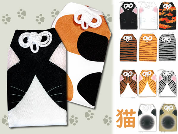猫イメージのお守り袋です。種類豊富にそろえていますので、ウチ猫や推し猫のお守りで楽しめます。神社向けの商品ですが、個人用、イベント用、猫カフェ、譲渡イベントなどでご活用いただけ
