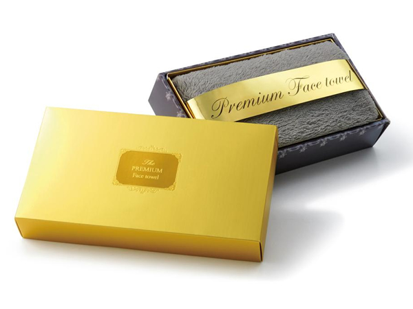 一番普段使いしやすい縦長の普通サイズのタオルのギフトパックです。タオルはふんわりタイプです。タオルに名入れはできませんが。金色の箱がとてもキレイなので、のし紙を巻いて送り主の名前と気持ちをお伝えすることができます。
