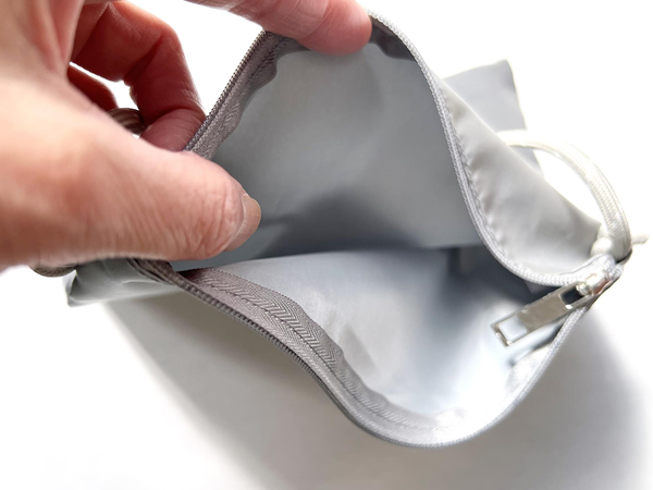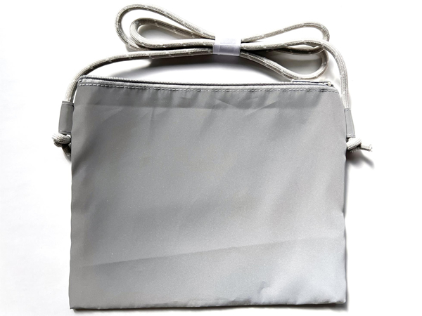 全面が反射素材のサコッシュ(ポシェット)です。よくある反射タイプのアイテムはワンポイントなのですが、こちらは全面がしっかり光るので結構目立ちます。同じシリーズでミニポーチとエコバッグもあります。