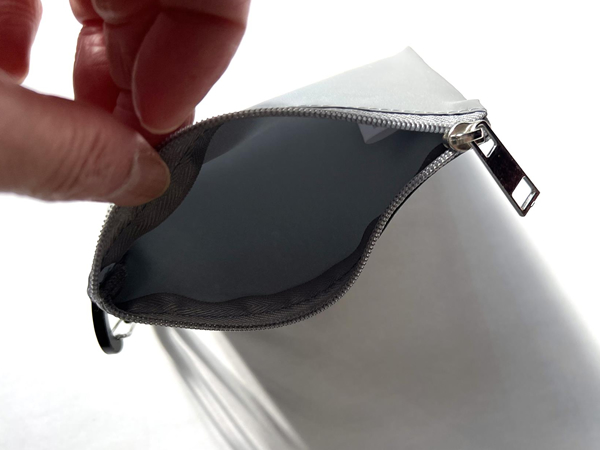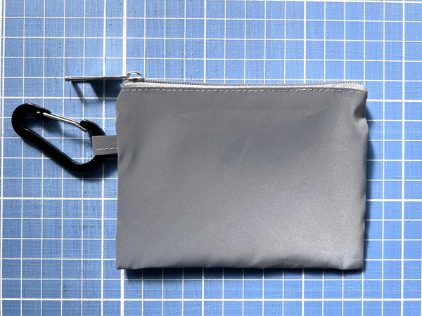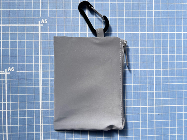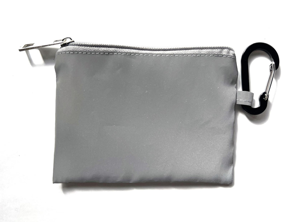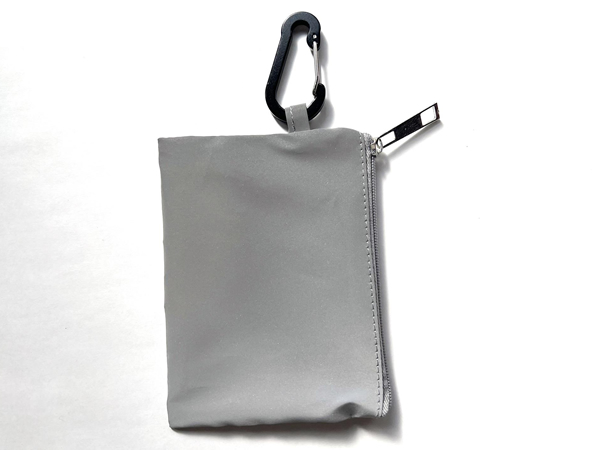 全面が反射素材でできているミニポーチです。カラビナフックが付いているのでバッグなどに簡単に取り付けることができるので普段使いで夜間の交通安全ができます。