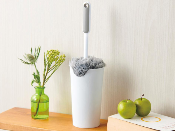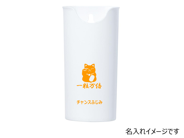 ふんわりタイプのハンディポップです。収納ケースに名入れができます。ケースは置いてスタンドタイプでも使用できますし、裏面に壁掛け用の穴も開いているので吊るして収納することもできます。名入れ対応につきましては本体が白色なのでインク色でいコーポレートカラーを再現できるのできれいな仕上がりになります。実際に手に取って使用したところ先端に毛がないのが気になります。本棚の隙間とかで使ったときに先端がコツンと当たるのが嫌な感じでした。