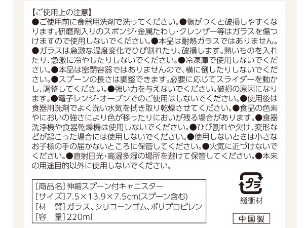| 商品名 | ガラス調味料入れ 伸縮スプーン付 1個 |