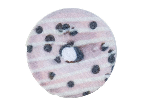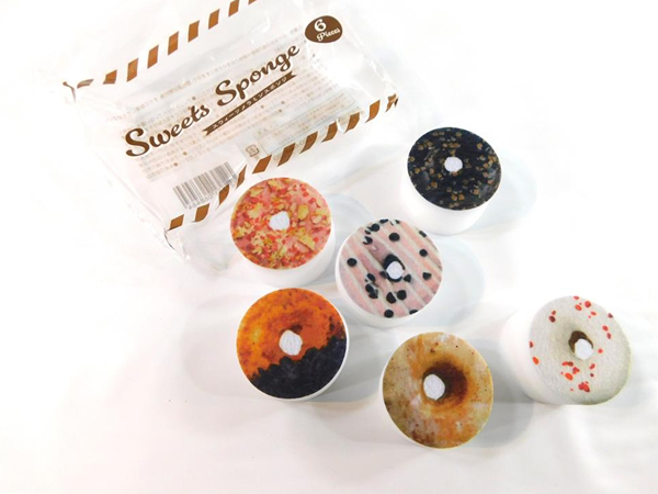 小さなドーナツ柄のメラミンスポンジです。メラミンスポンジは周知のとおり水に濡らして研磨掃除をする使い捨てのスポンジです。普段使い出来る消耗品なのでもらったら役立ちそうなのでちょっと嬉しい日用雑貨です。