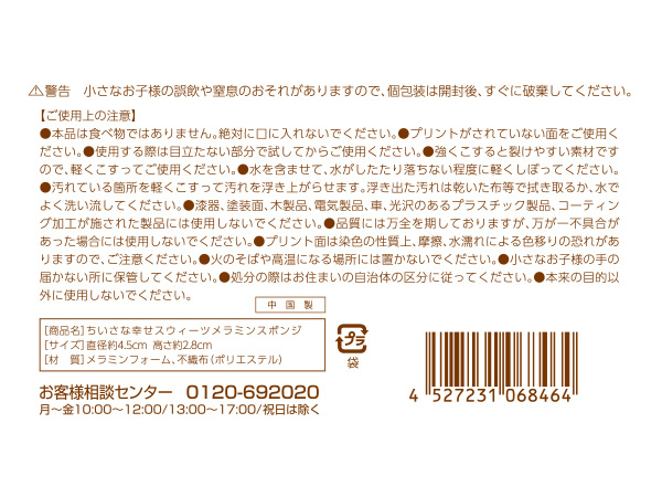 こちらは「ちいさな幸せ スイーツメラミンスポンジ6個組」の検索結果です