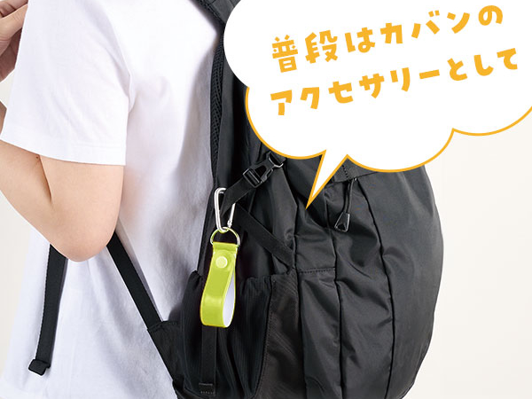 シンプルなバンドタイプの反射板です。くるっと丸めてボタンで留めることができるのでタオルホルダーなどとしても活用できます。危険度を伝えやすい黄色が目印です。