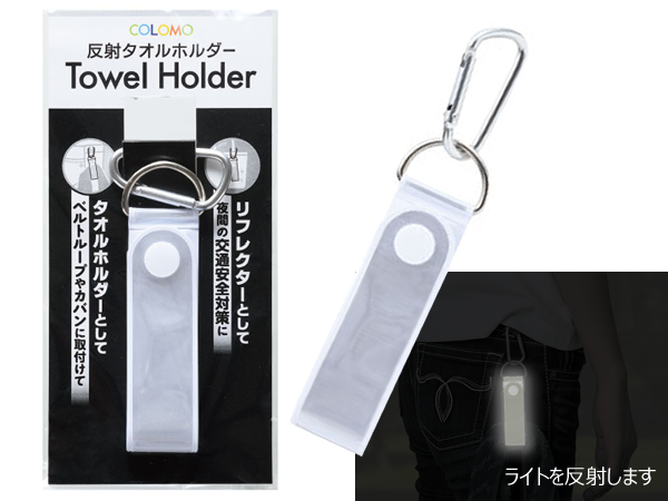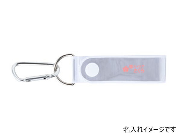 ボタン付きのバンドタイプの反射板です。シンプルな白色なので名入れのカラーでイメージを伝えやすいのが特徴です。ボタンで止まるのでタオルホルダーなどに活用できます。