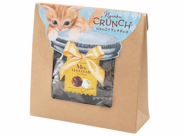 ところで、商品のお菓子はザクザク食感のクランチチョコレート。味ごとにお気に入りの猫を見つけてプチプレゼントにお勧めです。