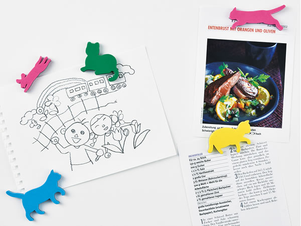 マグネットは8種類入っています。缶ケースにロゴなどをプリントできるので、ちょっと楽しいオリジナルグッズになります。猫モチーフで魚の形はわかりますが、ピンクの右端のはなんだ?と思います。下半身的にはヘソ天か飛び猫のようですが上半身がなんでしょうか…バンザイをした状態だとして真ん中の突起が顔だとすると右から出ているパーツは…なんだかよくわかりませんのでお含みおきください。