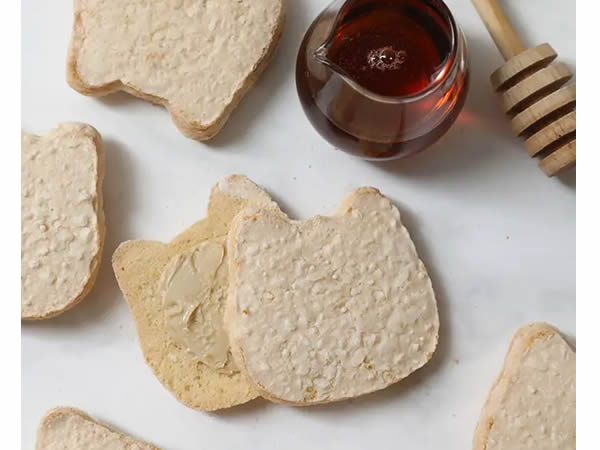 お菓子は外はさっくり、中はしっとり。アーモンド風味のメレンゲをかわいいねこ型の焼き菓子に仕上げました。上品な甘さのメイプルクリームと一緒にお楽しみください。
