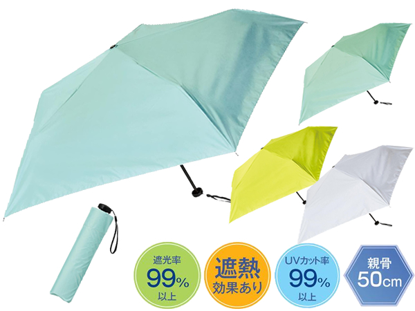 スマホ一台分の超軽量設計!カバンに1本忍ばせておくと安心の晴雨兼用傘です。軽量なので女性やシニア向けにもおすすめです。春夏シーズンにぴったりのさわやかなカラーリングも魅力的。