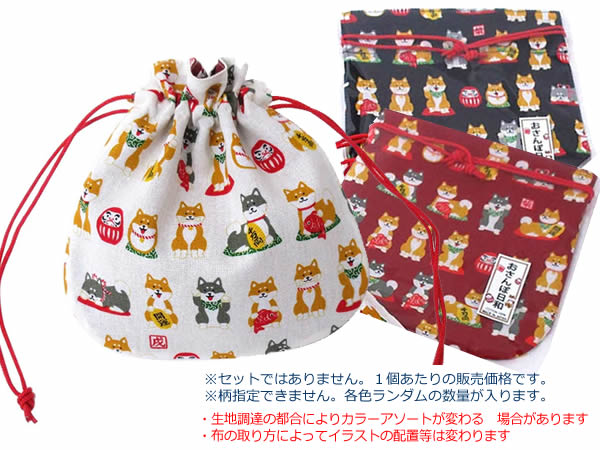 | 商品名 | 【12個単位で注文可能】柴犬縁起柄 小丸巾着 1個 |