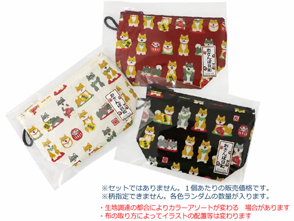 | 商品名 | 【12個単位で注文可能】柴犬縁起柄 マチ付きポーチ |