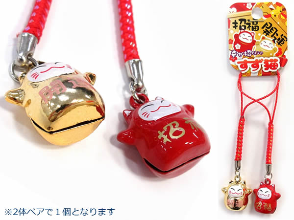 | 商品名 | 【20個単位で注文可能】ねこ型鈴ストラップ開運招福(金赤)ペア 1個 |